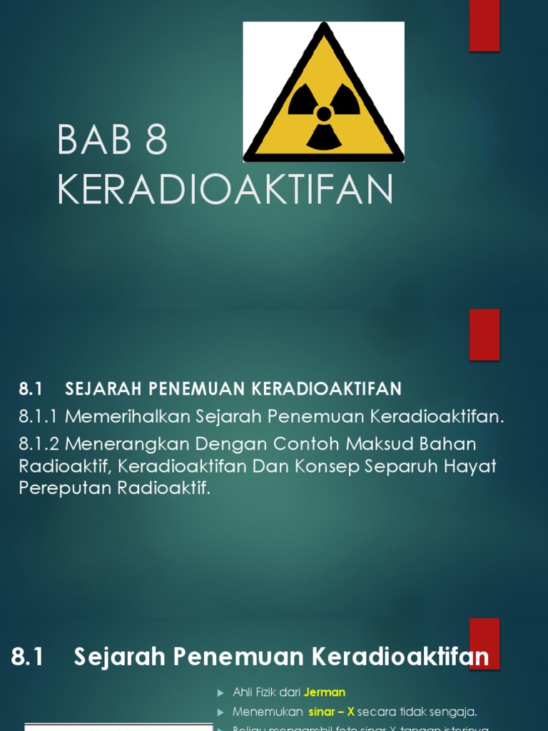 Nota ringkas sains tingkatan 4 (bab 1 hingga bab 8). (b) supaya larutan metilena biru dapat mewarnakan bintil glikogen pada sel pipi dan binaan sel pipi akan jelas kelihatan. Koleksi nota sains form 4 dalam bahasa melayu penyiasatan saintifik hingga bahan kimia dalam perindustrian. Sains spm tingkatan 4 bab 6. 6.1 bahan radioaktif selamat menjawab. Download rpt sains tambahan tingkatan 4 yang dapat di muat turun dengan segera ini ialah hasil kerja keras para guru dari seluruh malaysia link download fail : Sukatan terdiri daripada 6 tema, dengan 8 bab yang perlu dikuasai 6.3 menyedari keperluan mengendalikan bahan radioaktif dengan cara yang betul. Reputan radioaktif ialah proses yang melibatkan kehilangan tenaga nukleus atom yang tak stabil melalui pancaran zarah terion atau pancaran radiasi. Hence you can not start it again. You have already completed the quiz before. Radiasi didefinisikan sejenis sinar tetapi memiliki energi yang besar dan daya tembus yang tinggi. Mendengar kata ini apa yang pertama kali muncul di benak kalian? Pelajar dapat memahami bahan radioaktif, penghasilan tenaga nuklear dan kegunaannya dan menyedari keperluan mengendalikanbahan radioaktif dengan cara yang betul sc: